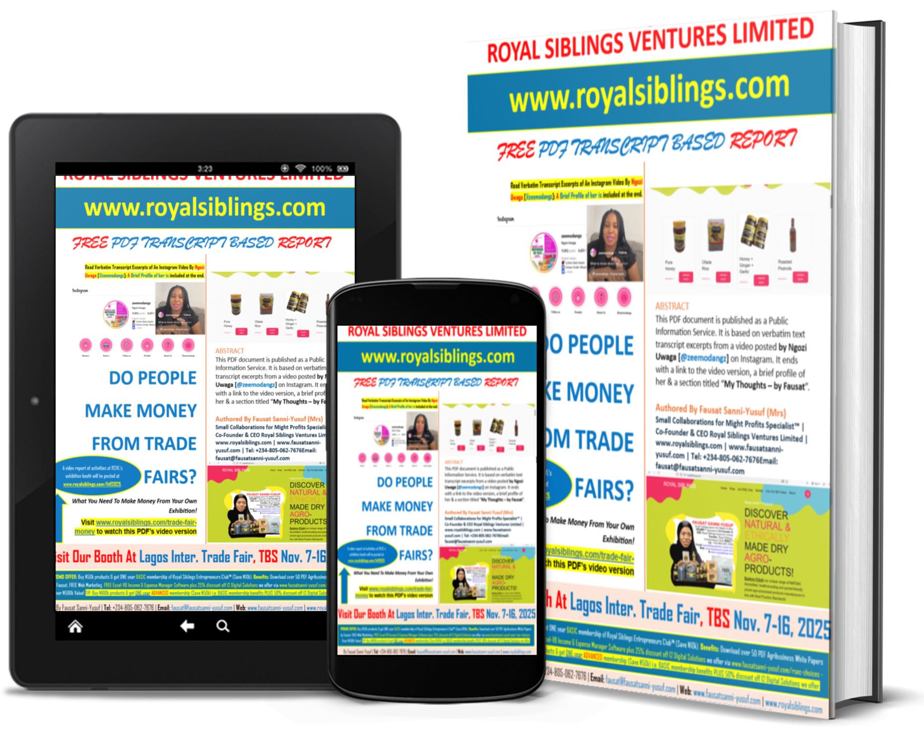 This PDF document is published as a Public Information Service. It is based on verbatim text transcript excerpts from a 26:11″ video posted by Ngozi, who is a female Nigerian business executive and entrepreneur.